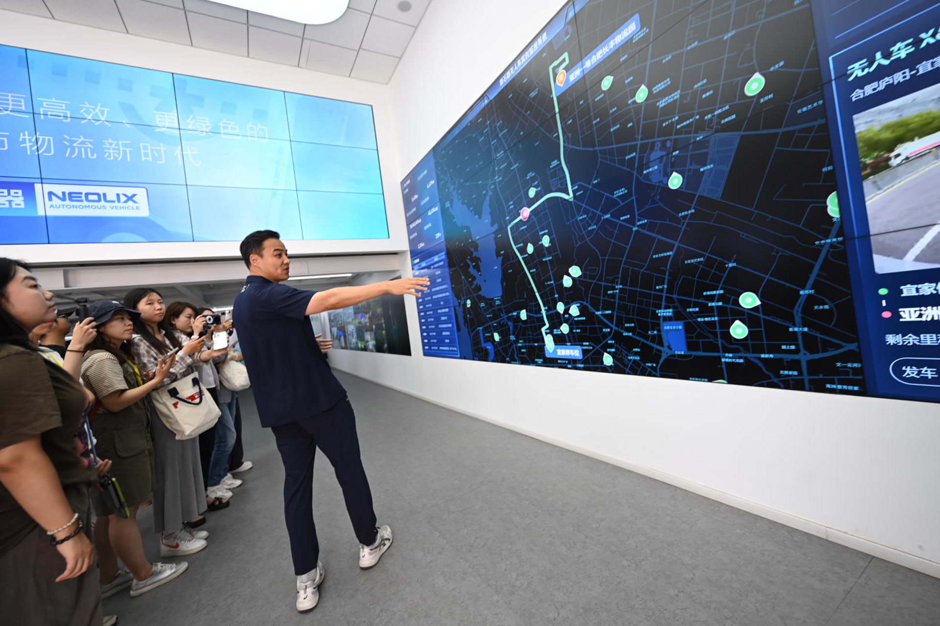 走进新石器无人车智慧物流工厂,一辆辆无人配送车或是驶回共配中心,等待自动化分拣线装载新一批快递;或是驶出工厂,各行其道把快递送往目的地。“总车辆数5437辆,当日运营车辆数4434辆……”新石器慧通(北京)科技有限公司的大屏幕上,实时显示着无人车数据。公司联合创始人兼总设计师杨哲介绍,目前,在经开区获准开展测试验证与商业化探索的车辆,1/3以上来自新石器。而且,所有在经开区范围内测试运营车辆,都有车路云一体化数据的合规接入。